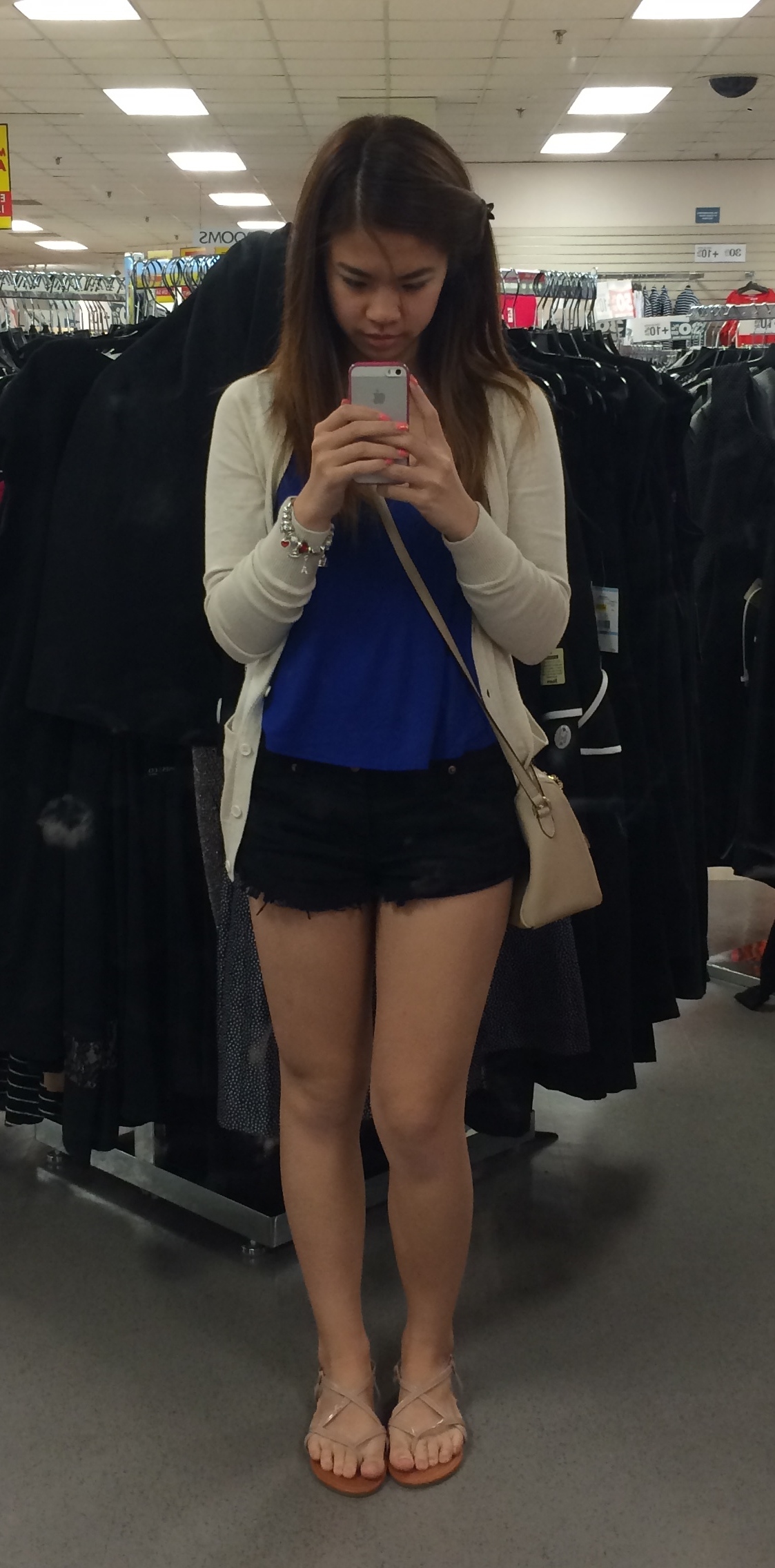 Just a simple OOTD fromo a few days ago. I had a very neutral outfit except for the navy blue tank top that I had on. I really think that blue looks great with nude colours especially cloer with the pink/brown side.